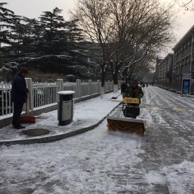 22日早上,绿化环卫中心根据扫雪除冰任务实际, 6:30提前安排员工上岗,继续开展除雪铲冰工作。早晨气温较低,清扫难度大,结冰层和浮雪混合,机械化作业和人工作业难度都很大,针对此情况,及时调整扫雪除冰方案,决定在部分路段、教学楼门前以及过街天桥台阶上抛洒少量的融雪剂,较好的提速了扫雪除冰的工作效率。此次扫雪除冰,校保卫处、后勤集团办公室、饮食中心、学生公寓中心、商贸中心、校医院、国际会议中心、水电中心、车辆保障服务部、建筑16-2班13名同学积极自发参与到扫雪除冰活动中来,各部门的主任、副主任亲自组织。